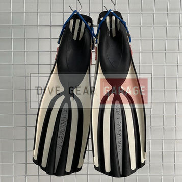 Scuba diving fins with strap to be used with neoprene booties. Material : TPR and Rubber Colour: White Size: S/M 38-41